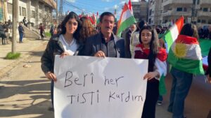 Li bajarê Qamişlo îro 31î Adarê bi sedan welatî, çalakvan û encûmena niştîmanî û nûnerên partiyên siyasî û saziyên sivîl beşdarî meşê bûn.