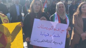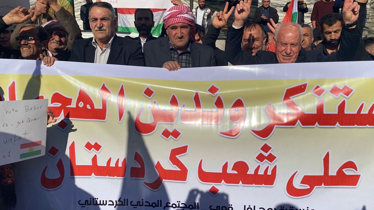 Herwiha Di seknandinê de alayên Kurdistanê û dirûşmên ji bo yekîtiya neteweyî û piştgiriya herêma Kurdistanê hatin bilindkirin.
